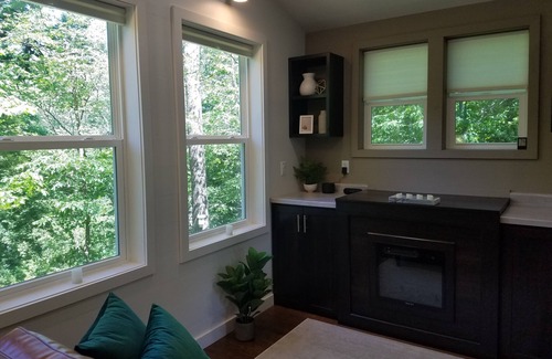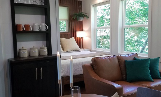 This cozy modern little lodge designed and built by Wisconsin Tiny Homes, is tucked into the woods 150 ft above a small woodland pond in the valley below. A bird lover's paradise. Comfortably and thoughtfully appointed, it's the perfect getaway to enjoy with a companion or as a solo retreat. Immerse yourself in nature and treat yourself with luxurious accommodations including complimentary beverage bar, and private hiking trails. Snow shoes available for use in the winter.