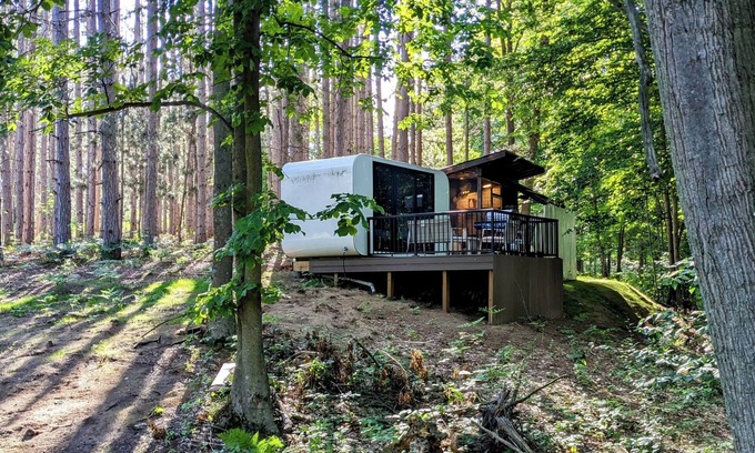 - Secluded Modern Tiny House with Wood-Fired Hot Tub Near Trails in Sears, Michigan