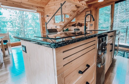 Our treehouse is a haven of well-being, peace, and elegance. In our stunning modern treehouse we have brought relaxation to a whole new level. Surrounded amongst us is nothing but woods & wildlife. An experience not to be missed. Put your favorite movie on the projector, get Zen in the cozy sun room, jam out to music on the record player, or grab a towel, and head for the custom cedar hot tub. It is time to create core memories that will never be forgotten. Welcome to a little slice of heaven.