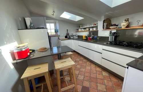 80 meters from the sea in a protected site at Pointe de la Torche Spot de Kyte and surf, this house, completely redone in 2018, will easily accommodate 3 couples and 4 children. You can therefore accommodate up to 10 people. From all the windows of the house you have a view of the sea.