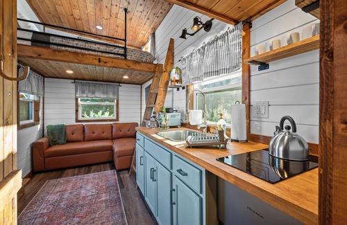 This cozy retreat features 1 or 2 tiny homes specially created for those looking to getaway in the great outdoors with relaxing seclusion filled peace and serenity. Enjoy relaxing in the hot tub or get out and hike, bike, or trail ride on 90 acres of private trails directly bordering the Cherokee National Forest.
