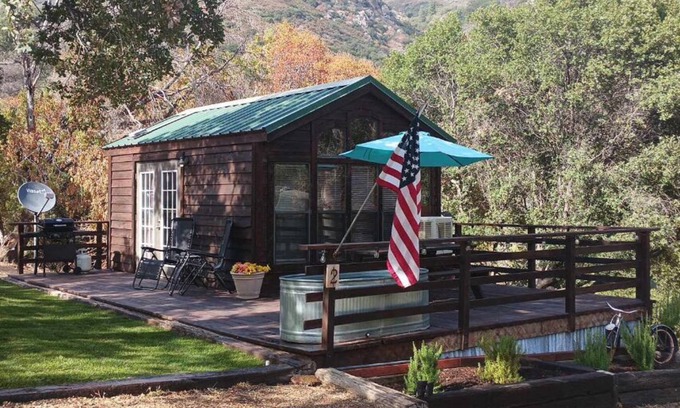 Escape to this cozy, solar-powered cabin just minutes from Sequoia National Park. Enjoy wood floors, beam ceilings, a well-stocked kitchenette, WiFi, smart TV, and a spacious deck with picnic table and BBQ. Surrounded by nature and mountain views, it’s the perfect off-grid retreat for couples, solo travelers, or families looking to relax, recharge, and explore.