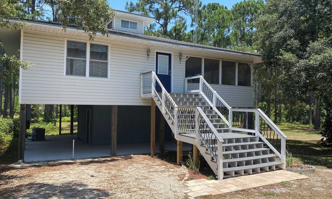 Enjoy a home away from home, in this cozy beach cottage, nestled in a quiet “old Florida” part of the State. Only 500ft from the beach. We have all the amenities of home right here. Stay for a few days or a few months. You’ll fall in Love with the scenery and the wildlife when you visit. Keep your eyes open for the white squirrels scurrying through the trees. While enjoying the therapeutic powers of our natural environment with nearly four miles of Gulf beach shoreline surrounded by 762 acres of woods with towering pines, twisting oaks and fan like palmettos, this area is a celebration of nature, offering an inspirational refuge to enjoy the great outdoors. No two days need ever be the same. Enjoy numerous activities or just relax and soak in the panoramic views offered by this extraordinary stretch of secluded coast. This area appeals to those who appreciate the wonder of nature and quality time spent with family and friends.