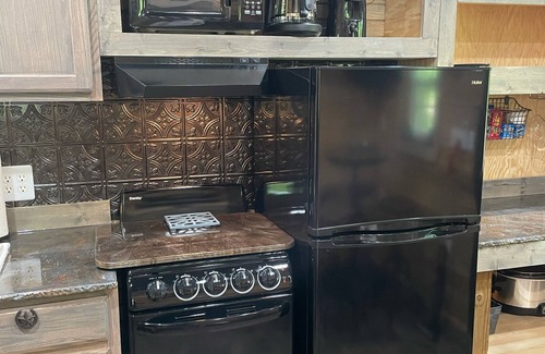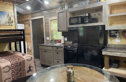 Experience complete serenity in the middle of the beautiful Ozark Mountains near some of the clearest rivers and streams. Whether you just want a quiet get away to take in all nature has to offer or you want to float, kayak, trail ride, hike, fish, boat, sxs ride, explore beautiful springs, search for the wild horse herds or just do nothing! For same-day arrival bookings, please inquire directly as it may show unavailable even though it is! We offer horse stalls ($10/nt) for BYOH Trailriders. We also offer guided rides for BYOH horses guests for an Add’l charge so you can sit back and relax and enjoy the area and not worry about getting lost. We also offer trailrides through the beautiful hills, valleys and creeks of the area. You may even get a sighting of the wild horses! Book The Bunk House cabin at Old Desperado Ranch. The Bunk House will be a studio type cabin that has a queen bunk bed (twin over top) complete with all linens, that includes a twin futon as well. It is best suited for a couple and children. The cabin will have a full kitchen stocked with everything you need to cook your meals (minus the food). The kitchen has microwave, coffee pot w/ complimentary coffee, toaster, crock pot, dishes, pots & pans, cooking and eating utensils and more! It also has a beautiful full bathroom including towels. There is a lovely sitting porch and a spacious deck area as well overlooking the creek. The cabin has a fire pit and BBQ grill. We also have horse stalls available to rent for your horses! Be sure to check out our other listings - The Ranch House & The Tiny House. Please be sure to review the cancellation policy and date changes also require a 30 day notice and there are no refunds for early departures. ABSOLUTELY ZERO TOLERANCE FOR ILLEGAL DRUG USE ANYWHERE ON THE PROPERTY. YOU WILL BE MADE TO LEAVE AND FORFEIT SECURITY DEPOSIT.