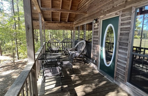 Secluded, peaceful cabin with walking trails & stocked ponds in SE Oklahoma is located in Pickens. Secluded, peaceful cabin with walking trails & stocked ponds in SE Oklahoma provides accommodation, featuring Child Friendly, TV, Bedding/Linens, among other amenities. This House features Child Friendly, TV, Bedding/Linens, to make your stay a comfortable one.