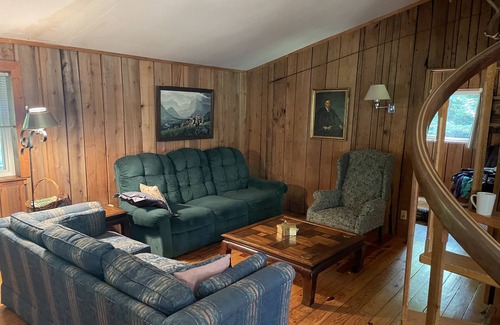 The cabin (called a ''camp'' in the mountains) was lovingly hand-crafted from 26 kinds of timber by a master carpenter/hippie. They had their first child in the only building a barn at a time when many city dwellers were fleeing suburbs in the 1970s. There is central air, radiant heating if you'd rather, a grill and smoker, a fire pit, satellite television, a washer/dryer/microwave, a new shower-tub, games, and plenty of books for reading during your stay. Wi-Fi has not reached the area but you have a booster for the cell phone and can hotspot and work online comfortably.