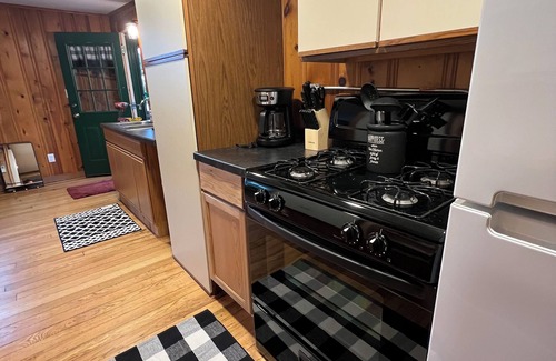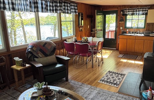 Updated and sits right near the water with its own dock, deck and fire pit. Sleeps 6 with new bathroom, shower and washer dryer! Can be rented with the big house or separately. Includes the use of kayaks, canoe, and paddle boat. Pontoon and fishing boat available for rent. One pet is allowed but please see the pet fee. This is a seasonal cabin May-Oct
