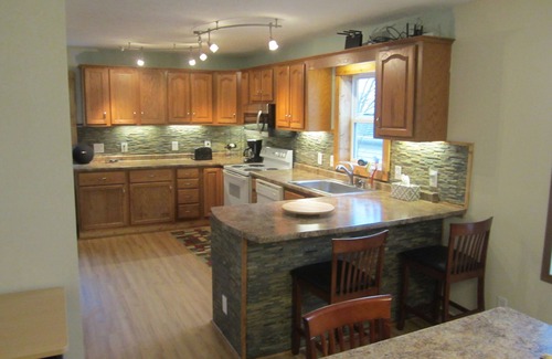Along with a fully furnished kitchen, you have a brand new washer, dryer, refrigerator/freezer with automatic ice maker. A second refrigerator with freezer and microwave are available in the cabana. There is a realistic propane fire log kit to make things cozy. Easy ON/OFF & nothing else is needed. The fireplace is located right in the dining room/kitchen area where everyone hangs out & can enjoy. All showers have grab bars for your in/out convenience. There is a portable generator that can power most of the house electrical needs. Newer furnace and air conditioner. Mother nature can literally reshape the beach in a moments notice. The lake level is currently low, the beach/sand has expanded and we currently have less of a grass area around the paver patio (a little different than the pictures).