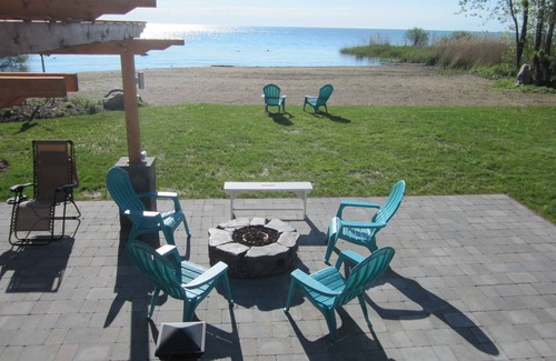 For families looking for a little quiet and seclusion nestled in the woods and right on beautiful Lake Huron then this is the place for you. I'm sorry, this is not a place appropriate for large groups. Welcome to Cedar Tree Beach House. Almost everything in & out is either brand new or newly renovated. Providing a warm and inviting 1700 sq. ft. with 3 bedrooms(w/ceiling fans) + loft area with queen air mattress (can sleep 2 adults but there is low headroom and limited space), 3 full bathrooms, living room(w/ceiling fan), dining room(w/ceiling fan), kitchen and sunroom(w/ceiling fan). And that is just the inside… The front offers plenty of parking and a beautifully landscaped and accessible front entry. Walking out the backdoor, you step onto a large 16’x24’ deck with propane grill, patio furniture comforts with umbrella. Walking down the deck steps you then step onto over 360 sq. ft. of paver patio space. Depending on your mood there is open paver space for sun and shaded space provided by a well-appointed pergola. Want a little more shade or seclusion, than camp out in the cabana. Day or night, the propane fire pit is at the ready for a story, a marshmallow or a great backdrop to the sound of the waves rolling around the 88’ of beachfront. (recommend water shoes because of fist size rocks and bigger in the water with scattered sand bars) Once finished on the water, then use the outdoor shower providing both hot and cold water. With plenty of outdoor lighting, the deck, paver patio and cabana are ready for night use.