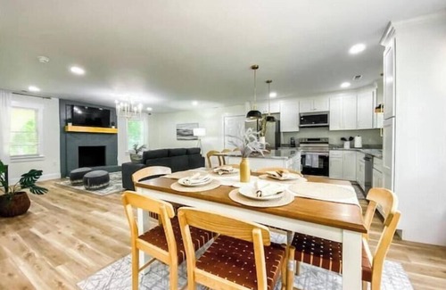 Welcome to Green: your perfect retreat in Zebulon. This beautifully renovated 3-bedroom, 2-bathroom sanctuary is just minutes away from downtown Zebulon and conveniently close to everything you need. Green boasts modern architecture, and thoughtfully chosen furnishings ensuring the perfect blend of comfort and style for your stay.