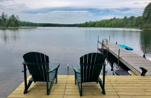 Our home is a lakefront property with a private beach and landing. We have non-motorized boats for you to use during your stay. There are technically 2 bedrooms but also has a loft bedroom and bunkroom. It is a unique log home with many beautiful features.