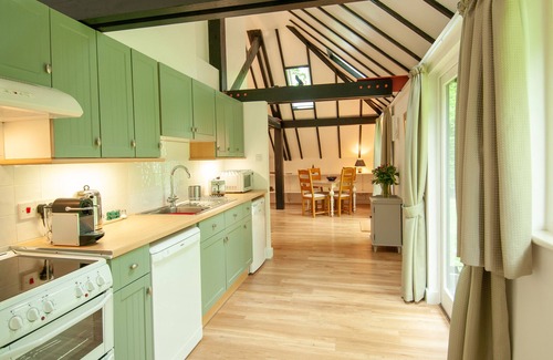This spacious secluded single-storey cottage is an ideal base for walking, exploring Wiltshire or simply relaxing. All Saints Cottage offers comfortable accommodation, with double height ceilings and French doors opening onto its own private garden, adjoining a bluebell wood.