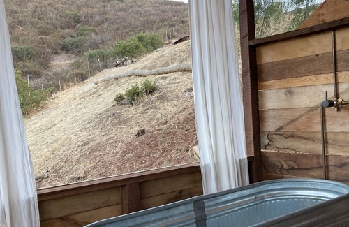 Our private sanctuary is peaceful nature haven surrounded by mountains. Relax in the quiet reverence of nature at our sweet space. The views are spectacular at this glorious property surrounded by mountains and undeveloped land. Our Sacred space, nestled under shade trees, offers a deck with impeccable views, and a magical outdoor shower. Fresh, clean air, hiking trails, a running river, and dark, star-filled skies are some of the reasons people come to stay with us. If you are looking for a place to rest and recharge, this is the place! Our guests boast about the quiet peacefulness our sanctuary provides.