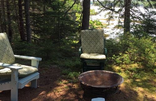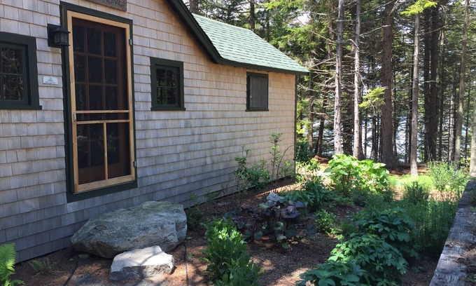 Beautiful, rustic one bedroom cabin located in acres of woods on a lively tidal salt pond. Ten minutes from cultural Blue Hill with its offerings of music, theater, dining, brew pub and art galleries. Near Bar Harbor, Acadia National Park and Deer Isle. Enjoy kayaking and swimming. Please sign the liability waiver if you use our kayaks. We have a swim dock with a ladder that has a ramp from the shore. The water was in the 70's this summer. Sunsets, abundant bird life and cool ocean breezes can be appreciated from the deck, outdoor shower, fire pit, or hammock . It is quiet and peaceful!
