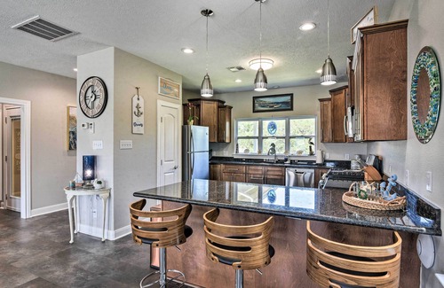Indulge in the finer things when you stay at this chic 4-bedroom, 3-bathroom island-like vacation rental! Spend your mornings sipping coffee while preparing breakfast in this home’s kitchen. Then, head out for a fun-filled afternoon of sightseeing and thrills at Kemah Boardwalk. Return home to relax by the fire pit and roast s’mores with your loved ones, making memories as the sun sets over the bay. End the night by taking a soak in the jetted whirlpool tub before getting a good night’s sleep!