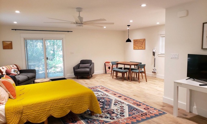 - Charming Accommodations: The studio features a queen bed and a cozy couch, perfect for couples seeking comfort in a serene atmosphere. An air mattress is available to accommodate additional guests, ensuring everyone feels welcome.