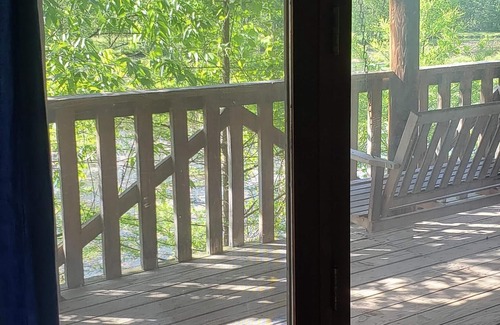 A unique stone house with so many nearby free amenities on a farm. A true nature sanctuary! Away from it all !! Amazing wildlife to watch and hear from a 50' deck overlooking stunning lake views. All rooms in the house have doors that access out to the deck. The deck is covered and has a porch swing and a table and chairs..