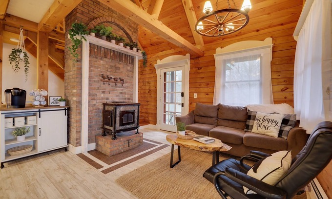 Welcome to S’mores & Seclusion, our log cabin/happy place in the beautiful Pocono Mountains. From the moment you walk through the front door, you can’t help but fall in love with all of the quirky, charming details all around the cabin. The property is 10 acres, and we have marked out a trail to hike, which ends at a bench by the stream. The lovely porch, complete with porch swing, looks over the peaceful private woods of the property. When in season, there are over a dozen fruit trees in the yard around the cabin. We are located within a 15-20 minute drive to Honesdale, PA & Narrowsburg, NY.