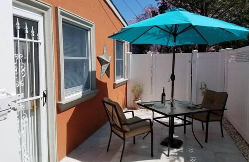 *Your space is a completely private studio that is separate from the rest of our home. There is no access to your personal living quarters from the main part of our home. There is only one entrance to your studio through a walkway on the side of the house. The studio, which includes a fully equipped kitchen, large closet and private full bathroom, is in a secluded corner of the property, and the patio in front of the studio is for your personal use only.