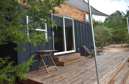 Escape, while staying close to Austin, to our sustainable tiny home on a wildlife-rich ranch. Nestled in 100+ acres of natural beauty, enjoy off-grid living with a pond, hiking trails, and abundant wildlife. Disconnect and unwind in this eco-conscious retreat without compromising on modern conveniences.