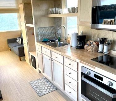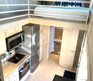 - XL tiny home with two lofted queen beds and full size futon on the main level.