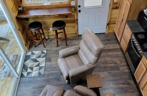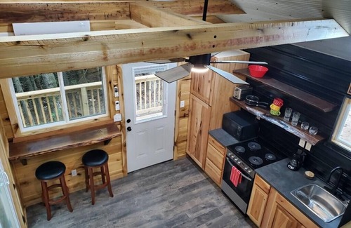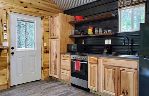 Named after the Red Spotted Newt, a salamander commonly found in the Red River Gorge, A “Newt” Little Cabin is a unique 240sqft studio +loft that sleeps up to three people. Start your morning with a cup of coffee listening to the birds sing while relaxing in an Adirondack chair on the walk around deck. In the afternoon, explore the rock shelter located behind the cabin or take a short trek in Cave Hollow. In the evening, climb the hillside for a majestic view while roasting marshmallows around the fire situated high above the cabin or stargazing in the soothing hot tub amongst the trees. A “Newt” Little Cabin is conveniently located only minutes from Natural Bridge State Resort Park, Red River Gorge Geological Area, and other local attractions and restaurants. It has a queen size bed featuring a Molecule mattress on the main floor and a twin-size mattress in the loft (accessible by climbing an 8ft ladder). The cabin has a fully equipped kitchen, eating nook/workspace, full bathroom, high-speed internet, a smart TV, Barcalounger and La-Z-Boy leather recliners, and heating and air conditioning. The cabin is on well water and recommend bringing bottled water for drinking. There is one pet less than 25 pounds is allowed.