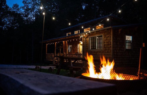 - Secluded Large Group Authentic Cabin with fishing, a hot tub and wi-fi