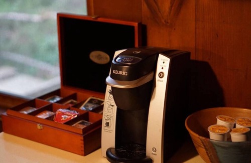 * Kitchenette w/sink, portable induction cooktop, coffee & tea bar, mini fridge, microwave & basic pots, pans, dishes and silverware
