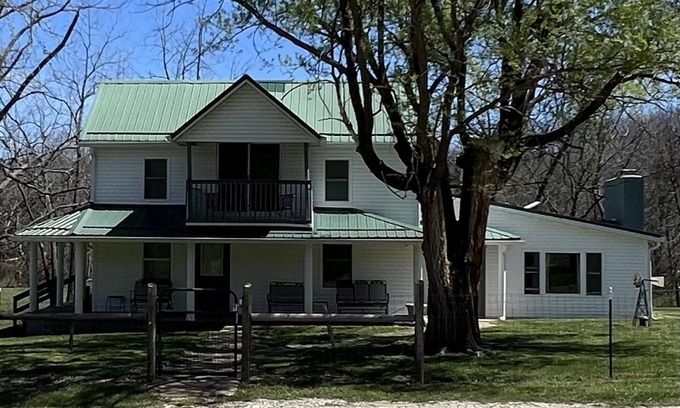 Secluded 2BR 2BA pet friendly farmhouse next to the Mark Twain National Forest, is the perfect place to escape! Relax to all the sounds of nature the Mark Twain National Forest has to offer. Take in the stunning views & peaceful surroundings from the wrap around porch, back deck or balcony! Master suit has cathedral ceiling, en-suite bathroom w/soaker tub & private balcony. Spend your day hiking a trail, exploring the area or kayaking the Current River & your evenings star gazing. We have placed security cameras at the entrance, records the entrance, & our home/office, records all around our home/office. allowing us to protect us & our guests by knowing who is on the property at all times.