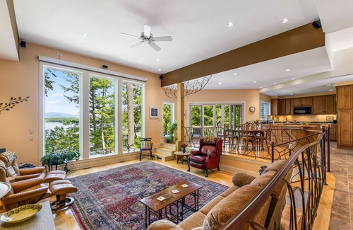 This private waterfront vacation home is set on nearly 4 acres and boasts over 800' of frontage with it's own peninsula on Squam Lake. Upon entering this open-concept home, you will be immediately drawn to the beautiful lake and mountain views from the sunken living area with floor to ceiling windows. The kitchen/dining area offers plenty of space for all your culinary delights. Dine in or step outside to the open deck and listen to the call of the loons. With 4 bedrooms and 3 bathrooms, there is plenty of space to accommodate up to eight guests.
