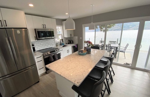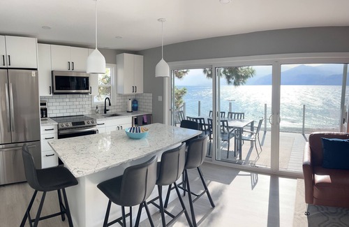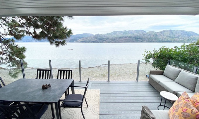 Come and visit our beautifully renovated, modern interior 2 bedroom lakeside Cabin with breathtaking views, and only a few steps from your patio deck to your secluded private beach on the Okanagan Lake in West Kelowna, British Columbia.