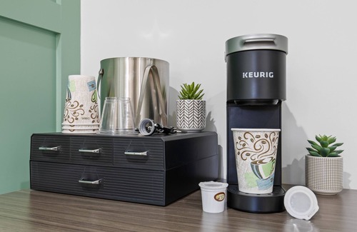 The Benton suite boasts a comfortable double bed as well as a coffee maker, TV, mini-fridge, desk and chair, and complimentary internet access.