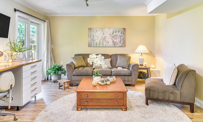 Experience true serenity at this Beaverton vacation rental! Backed by the wetlands and bird sanctuary, this 1-bed, 1-bath apartment offers an oasis for ultimate relaxation. Start your days with an on-site guided quantum hypnosis or sound bath session. Once all your stress has melted away, browse unique downtown shops or take a scenic stroll in the Portland Japanese Garden. After, unwind with a cup of tea on the patio!