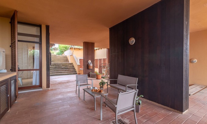 • Free Wifi • Terrace • Flat-screen TV • Air conditioning • Ceiling fans • Washing machine • Shared garden • Tennis court • Public Parking - car essential • Child-friendly