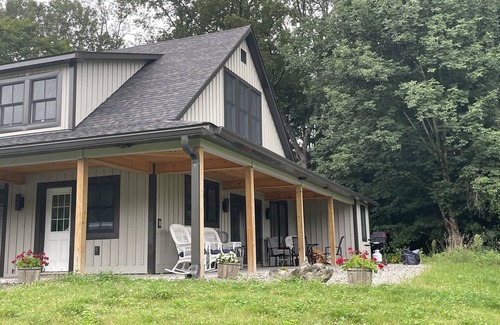 Looking for a private escape in the Berkshires? Come visit our brand new, one-bedroom/one-bathroom, well equipped first-floor apartment, close to the center of Williamstown, yet with the feeling of being hidden away in nature! Located in a barn on our property, you will have complete privacy, but we will be 100 yards away and happy to help as needed. Fully equipped kitchen, wifi, smart tv with cable, bedroom with new queen bed, bathroom with walk-in shower, laundry machines in unit and a covered porch are just some of the perks of the apartment. Direct access to hiking trails from the property. Gorgeous views!
