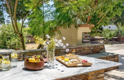 Secret Valley - Chora's Hideaway offers a serene retreat in Andros, combining modern comfort with natural beauty. This charming accommodation features free WiFi, air conditioning, and a lush garden with a peaceful terrace for ultimate relaxation. Guests can enjoy beautiful garden views and unwind on a private balcony. Inside, the spacious living room is equipped with a flat-screen TV, and the fully equipped kitchen allows for self-catering convenience. Just 900 meters from Paraporti Beach and within walking distance to the Archaeological Museum of Andros (1 km), this hideaway is perfect for exploring the island's cultural and natural wonders. Additional attractions nearby include the Museum of Contemporary Art of Andros (1.1 km) and the Naval Museum of Andros (1.4 km). The nearest airport, Eleftherios Venizelos, is located 121 km away, making it easily accessible for travelers.