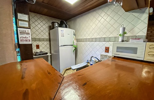 The condo is located in the middle of the mountains, 3.5km from the center of Secretary which has a good trade and restaurants. Vilarejo das Cachoeiras is an ideal family condominium. It has a large green area with waterfalls and leisure structure (games room, TV room, library, fireplace in the headquarters, swimming pool, covered and heated swimming pool, natural water pool, sauna and steam room, soccer field, tennis, restaurant open weekends, holidays and holidays serving affordable breakfast, lunch and dinner, barbecue). Attention: Take bed linen and bath. The daily amount does not include these items. Covered with 3 bedrooms (2 with double bed and 1 with sofa bed), 2 bathrooms, living room (with 1 sofa bed), integrated kitchen with living room, equipped with refrigerator, electric cooker 2 burners, microwave, coffee maker , sandwich maker, toaster and other utensils. The kitchen is small, meaning it is not suitable for large meals. Balcony with round table and four chairs. Beautiful views of the pool, tennis court and condo headquarters.