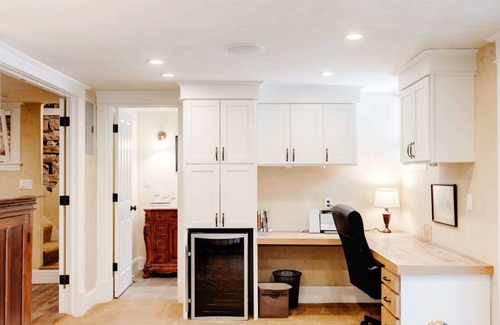 * The guest suite Kitchenette is well equipped with a Sub-Zero refrigerator and freezer, microwave and toaster oven, hot plate, wine cooler, and coffee maker—and all the dishes, utensils, and glassware one needs to prepare a wonderful meal at home. (Everything but a full stove)
