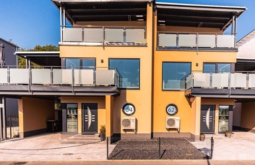 - SEE UM'S ECK vacation apartment - modern apartment with loggia directly on Lake Hain