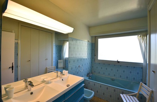 This villa with 80s decoration includes on the ground floor a large living room with a living area and a lounge area with television opening onto a south-facing terrace. A fitted kitchen equipped with a fridge/freezer, oven, ceramic hob, microwave, toaster, kettle, filter coffee maker and dishwasher.