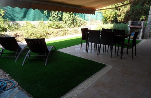 After a day at the sea, you will love to relax in the patio of the flat, which has a coal barbecue, an outdoors living room, and recliners. On the other hand, the villa’s garden, peaceful and well-kept is a total of 50 m².