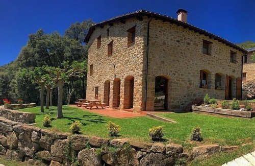 La Coma d'en Roca is a restored 17th century stone house that stands out due to its elevated location in La Vall de Bianya, which gives it exceptional views. It has large common spaces and an impressive garden culminated by a fenced pool facing the Massif of Cabrerès.