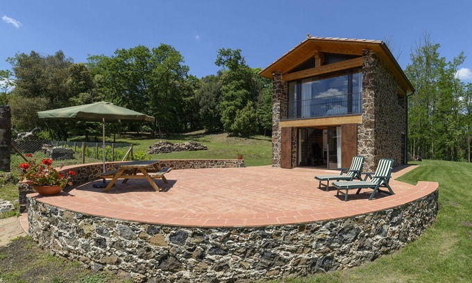 The Cabaña de la Cadebosc has been completely rebuilt with all the modern comforts, making it a pleasant quiet and solitary space but only 5 minutes from Olot and Santa Pau.