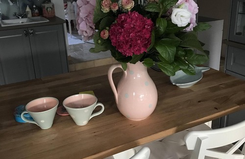 Lovely self contained 2 double bedroom apartment finished in modern French, contemporary style. Has lovely open plan living room/kitchen. The living area has 2 sofas and a coffee table and various side and console tables as well as 2 further French antique chairs and a desk with chair. Brand new kitchen area is fully equipped with an electric oven and ceramic hob, kettle and toaster and coffee machine. The kitchen also has an island with 2 bar stools and large freestanding fridge/freezer. Two lovely double bedrooms decorated in French style. Bedroom one has an upholstered Double Bed with a free standing slipper bath in the room together with a large wardrobe and chest of drawers. Bedroom two has lovely Double Antique French Bed, wardrobe and chest of drawers. Hallway has a further wardrobe. Brand new shower room has walk in shower with rainwater shower head, sink unit and toilet.