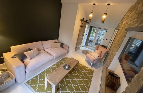 The Annex @Harrold Road is a newly converted space offering a haven close to the bustling market town of Olney. With exposed stonework, contemporary decor and modern monochrome en-suite shower room, guests have their own space with front and back access to the driveway and large enclosed garden. Attached to the main house and with a parking space, the double aspect overlooking fields will allow guests a feeling of countryside living, and the large gazebo complete with firepit is available for use all year round. Tea and Nespresso coffee machine facilities provided, with fridge and flat screen Smart TV. Small well-trained dogs are welcome!