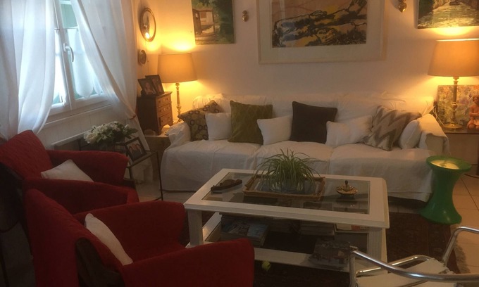 Apartment of 75 m2, in the center of the village, (15 steps) no condominium with closed parking, including, a main room furnished with contemporary style (Garouste and Bonetti), Television, open kitchen, 2 bedrooms, bed of 140 with television, shower room, separate toilet, (internet) with all the comfort, for 4 people. Located in a cul-de-sac, calm is de rigueur and very sunny