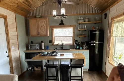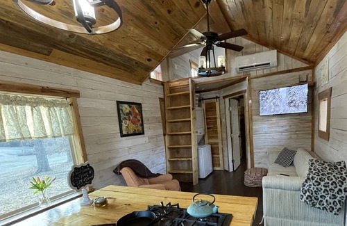 Semi secluded 2 bedroom 1 bath tiny house with a loft and everything you need to stay comfortable.