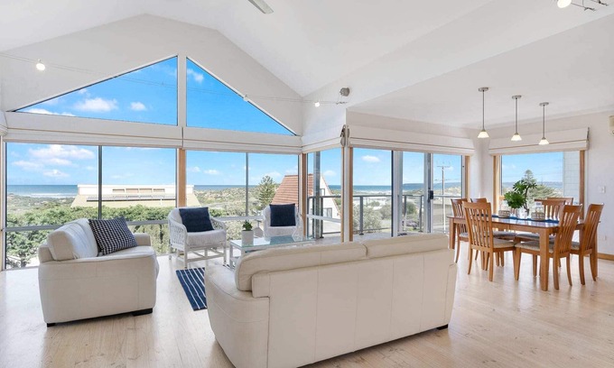 Stunning two-Storey beachside holiday home perched high to capture the most spectacular sea views on offer, from Goolwa all the way to Victor Harbor and beyond. As soon as you enter you will feel in holiday mode. The house is large enough for a big family with the kids and their friends or even for two families together. The property is split over two levels with each level serviced by a split system heating and cooling.