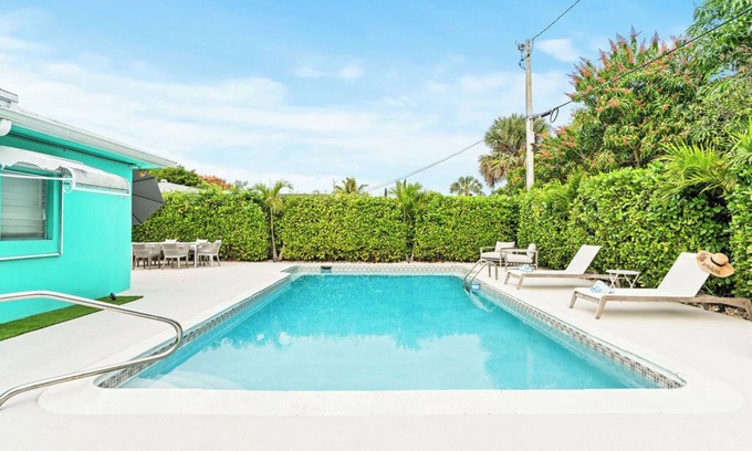 This charming 4-bedroom, 2-bathroom home in West Palm Beach offers the perfect blend of comfort and style. Located in a quiet, desirable neighborhood, the property features a spacious open-plan living area, a modern kitchen, and a beautiful backyard oasis with a HEATED private pool. Ideal for families or small groups, this home provides a relaxing retreat while being close to local attractions, dining, and the beach. Enjoy your stay in this inviting, well-maintained home!