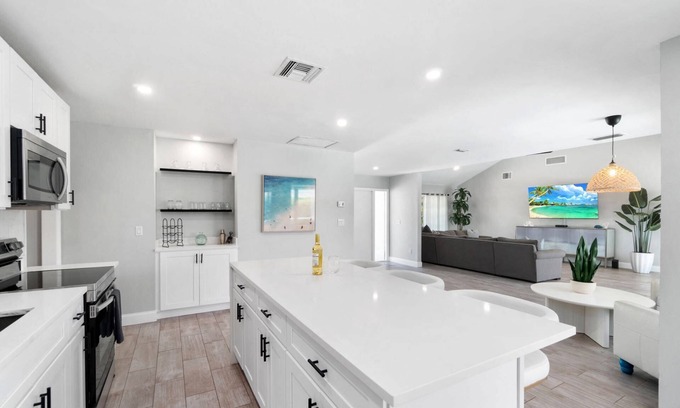 Welcome to the New Listing! Centrally-Located, Beach Chic Getaway w/Private Pool, Beach Gear & WiFi—your perfect haven for a romantic wedding retreat. With its stunning beach chic aesthetics and spacious layout, this property is designed to create lasting memories as you celebrate your special day. The open-concept living space, flooded with natural light from vaulted ceilings, offers an inviting backdrop for gatherings with loved ones, making it easy to transition from wedding festivities to relaxation in paradise.